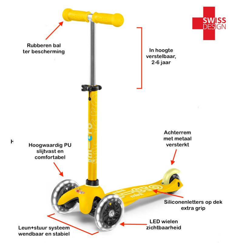 De Mini Micro step is de kwaliteitsstep voor jonge kinderen - er zijn geen vergelijkbare steps op de markt. Het unieke gepatenteerde 'lean-and-steer' ontwerp, ontwikkeld met de hulp van Zwitserse medische experts, zorgt ervoor dat kinderen sturen door hun gewicht te verplaatsen. De step stuurt hierdoor uitermate veilig en stabiel door bochten. Het voelt voor kinderen als surfen terwijl ze van links naar rechts gaan, hetgeen een gevoel van fun en onafhankelijkheid geeft. Door zijn lage gewicht (1,9 kg)is hij makkelijk te dragen. De streeploze wielen maken de step ook geschikt voor gebruik binnenshuis. Winnaar van vele internationale prijzen.